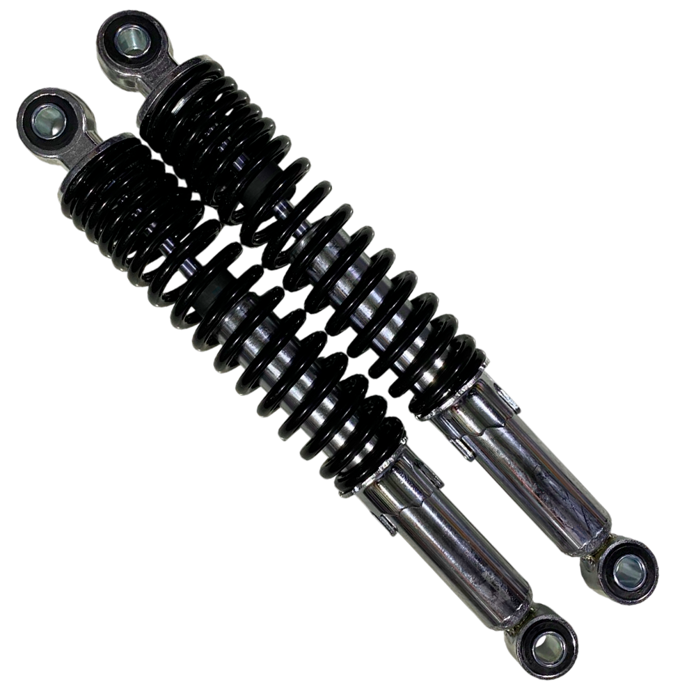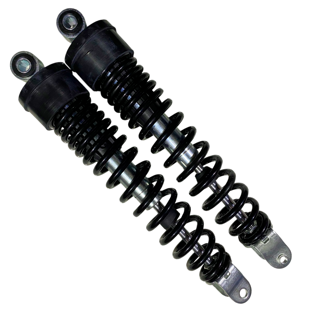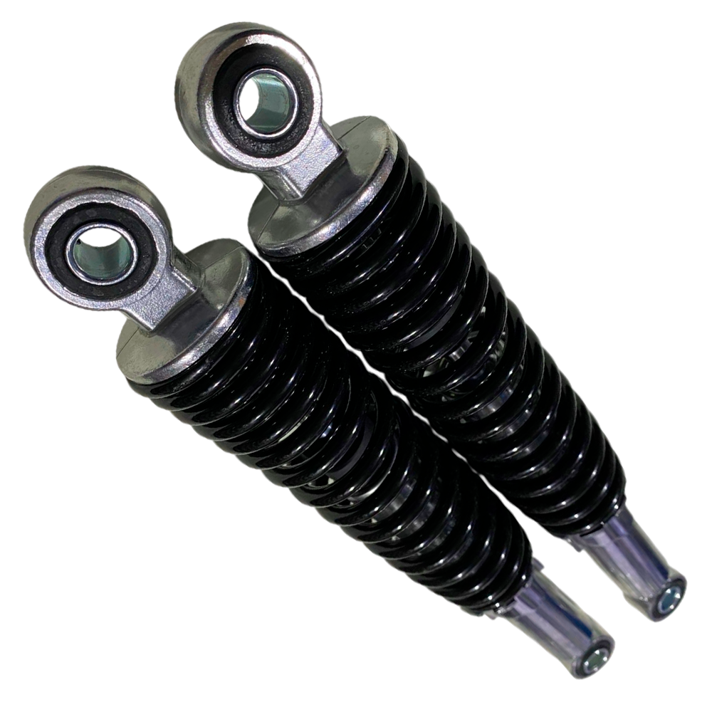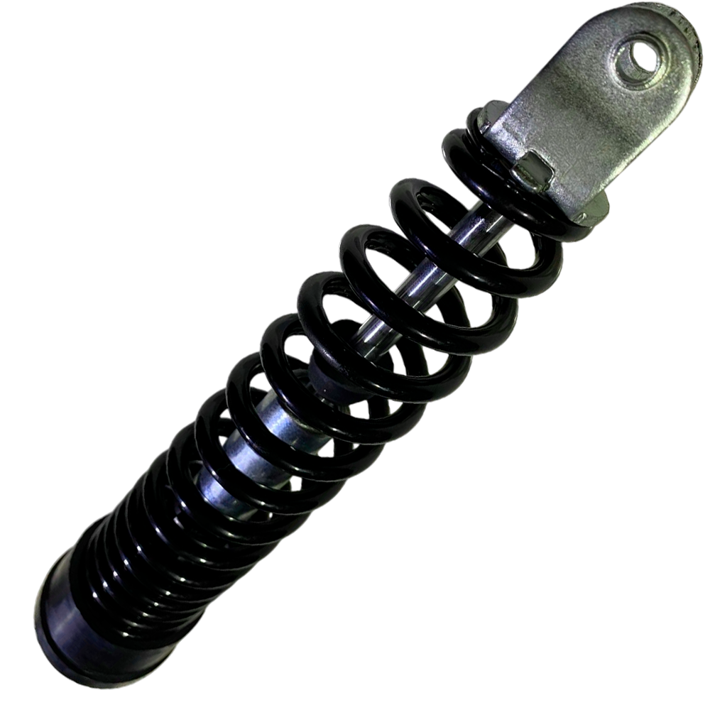 Amortecimento: hidráulico com mola helicoidal, projetado para absorver bem impactos de irregularidades no solo e manter estabilidade em curvas