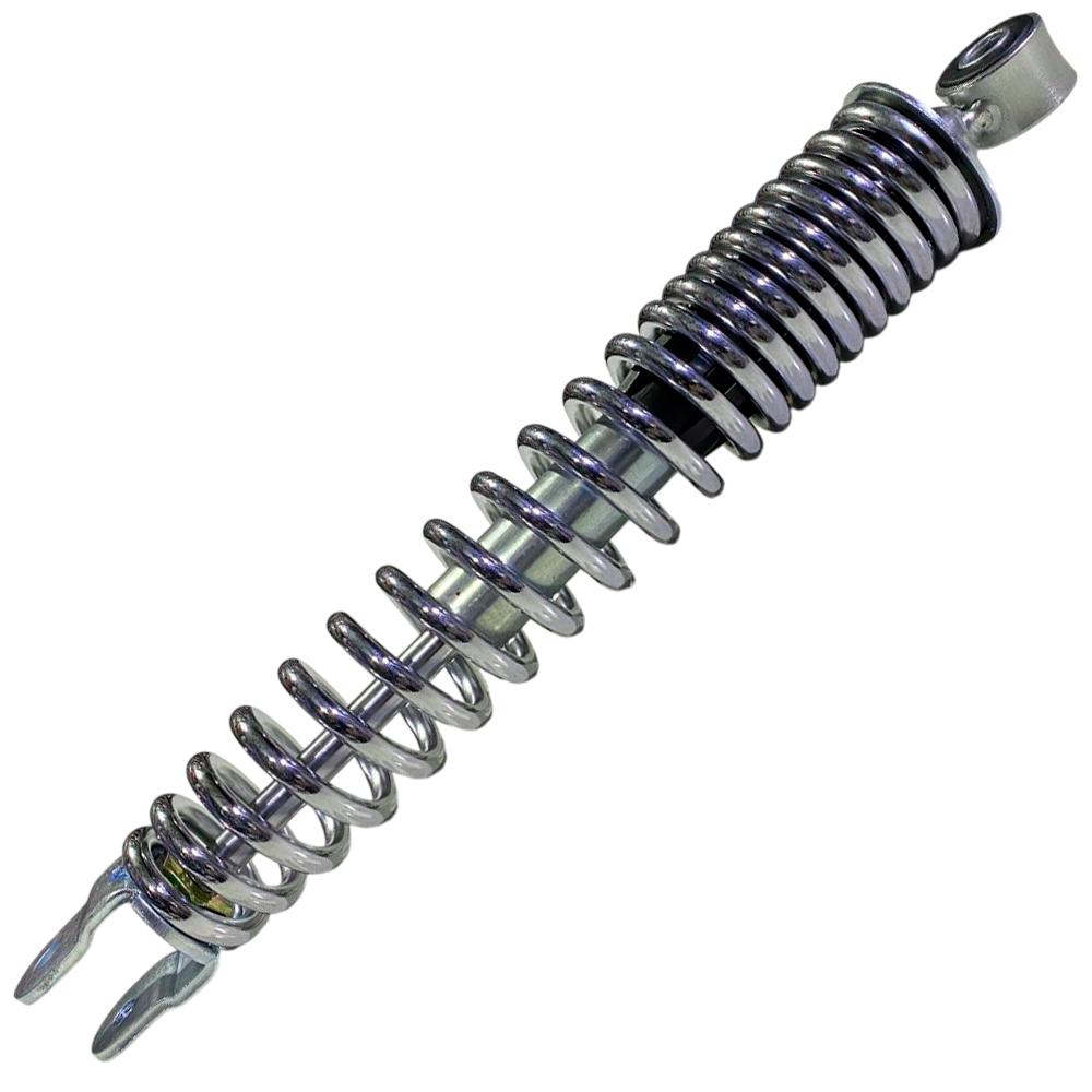 O acabamento é cromado, conferindo visual diferenciado (“look” de peça premium) para a suspensão traseira.