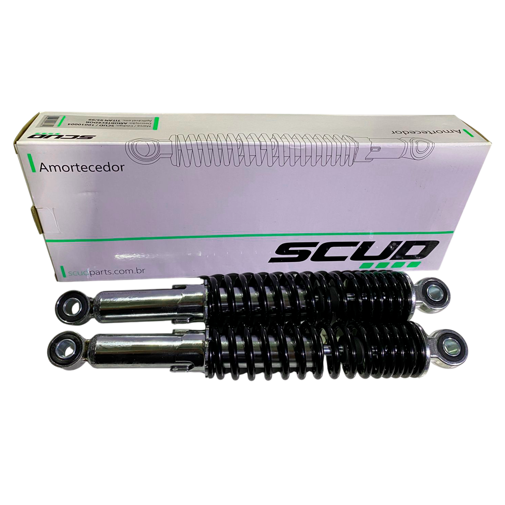 Este é um conjunto par de amortecedores traseiros da marca Scud, desenvolvido para a motocicleta Honda CG 125 Titan (anos 1995 a 1999). Compatível com modelos que utilizam o padrão traseiro da CG 125/Titan dessa geração.